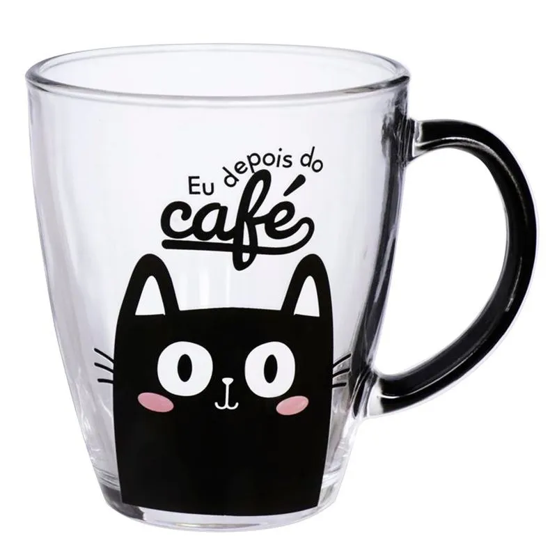 Caneca de Vidro super charmosinha para as gateiras de plantão com alça de gato, para tomar sua bebida favorita, porta escovas, porta lápis, ela é linda e super multiuso
