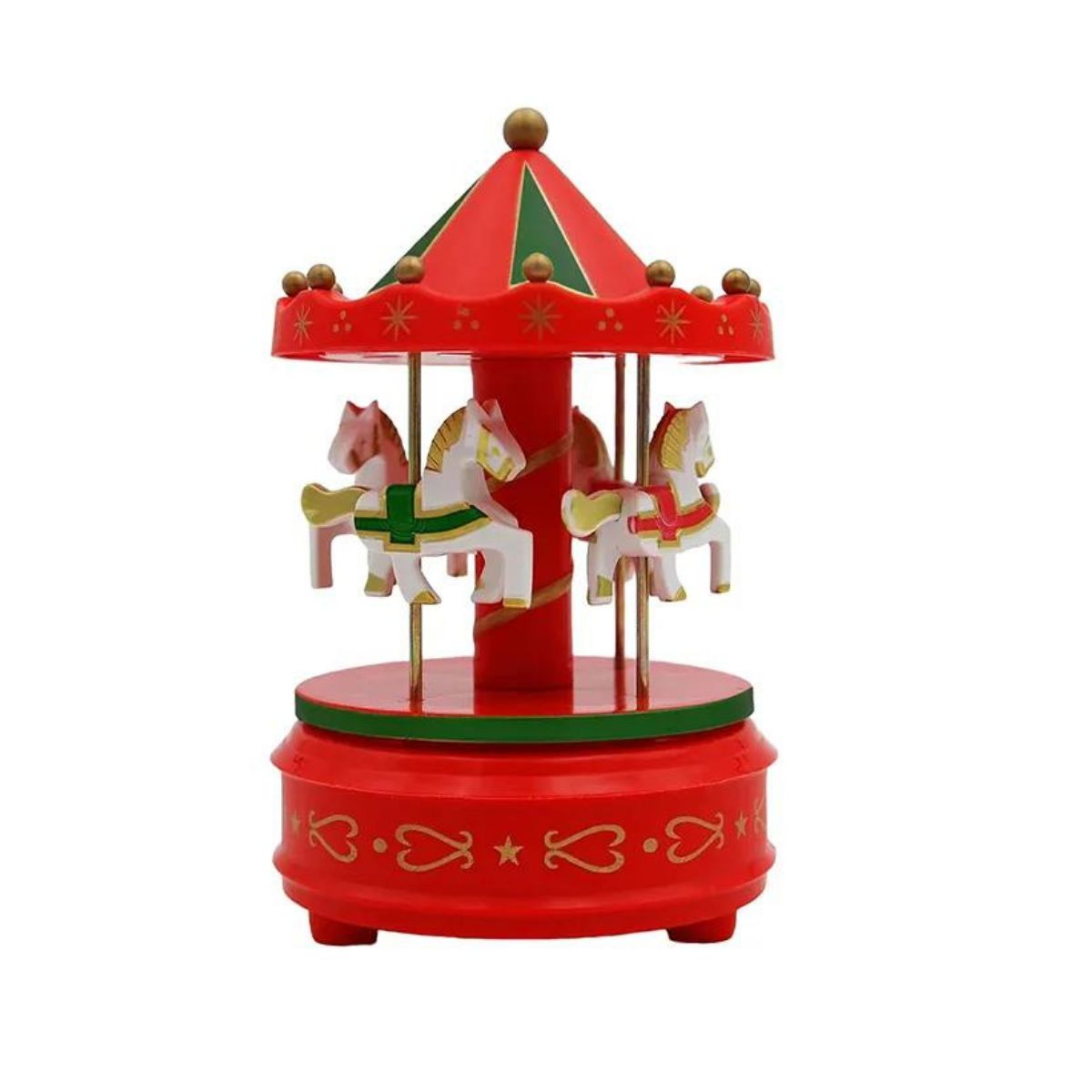 O enfeite do carrossel é uma representação da alegria e do encanto do Natal. Ele apresenta uma intricada estrutura que gira, criando um movimento suave e hipnotizante. A combinação de detalhes caprichosos e cores festivas torna ele um destaque na sua decoração.