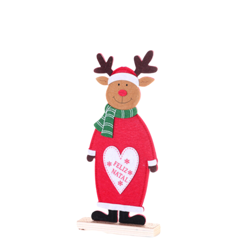 O Enfeite Rena Feliz Natal Feltro é uma peça encantadora para suas decorações de Natal. Com um sorriso caloroso e a frase "Feliz Natal" em sua roupa, ele transmite alegria e espírito festivo.