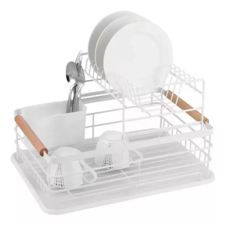 Escorredor de Louça Duplo, com bandeja para escoar a água direto na cuba e não acumular na pia, para 9 pratos com espaço adequado para talheres, com bandeja preta e aramado cromado, super tendência para as cozinhas mais chiques e modernas.